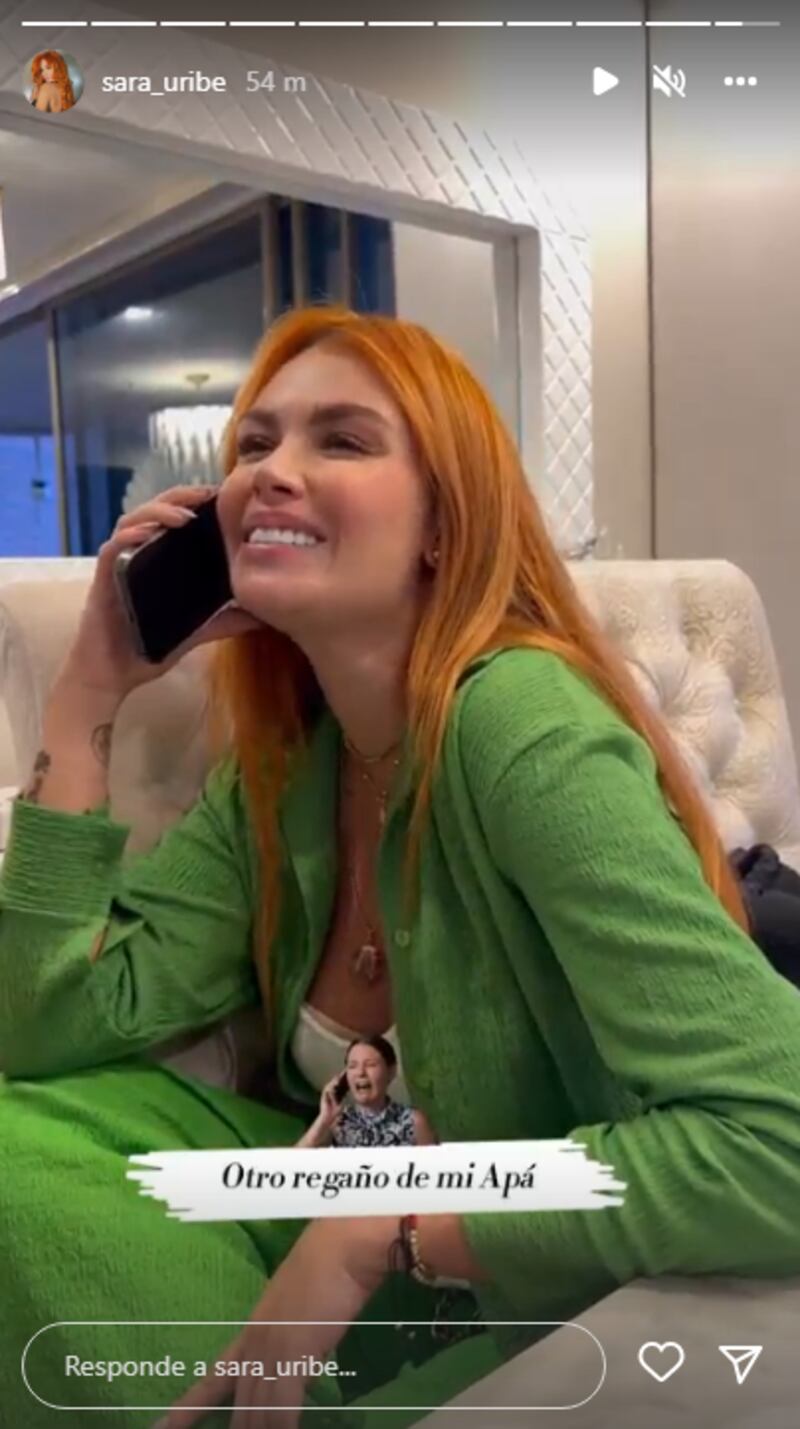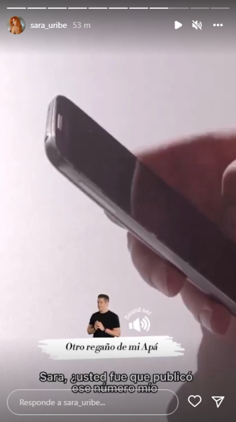 En las siguientes historias, la presentadora muestra una serie de videos en los que se puede escuchar un audio de su papá regañándola por el descuido que tuvo: “¿Sara, ¿usted fue que publicó ese número mío porque no han hecho sino llamarme? (...) Me han llamado tres muchachas. No aguanto ese teléfono sonando”.