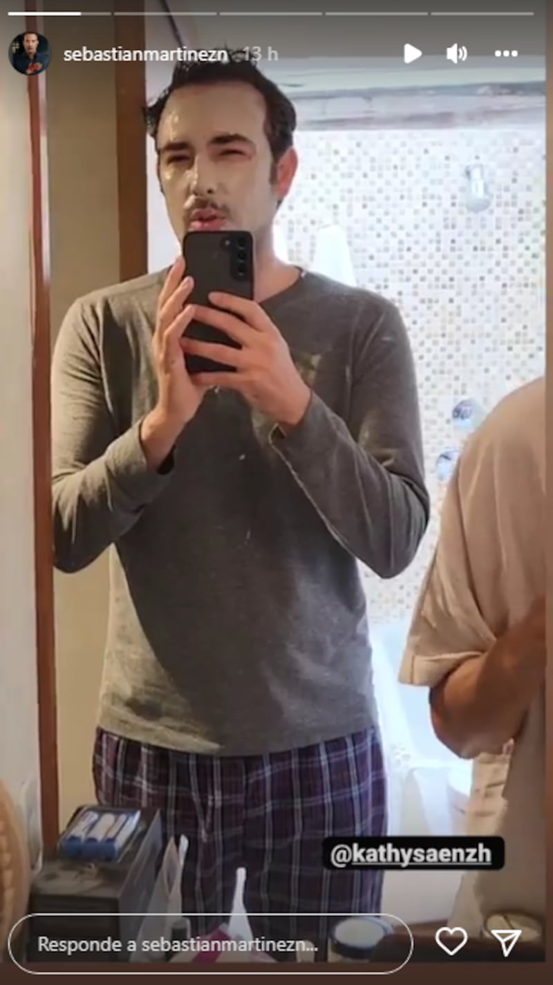 “Ellas saben qué hacerse, ellas saben qué echarse. Uno sí es de seguir más sus instintos, lo que uno sabe qué le funciona. No tanto depender de lo que ellas le digan”, narró sarcásticamente Sebastián Martínez mientras mostraba que él también se había aplicado la misma mascarilla que su Sáenz.