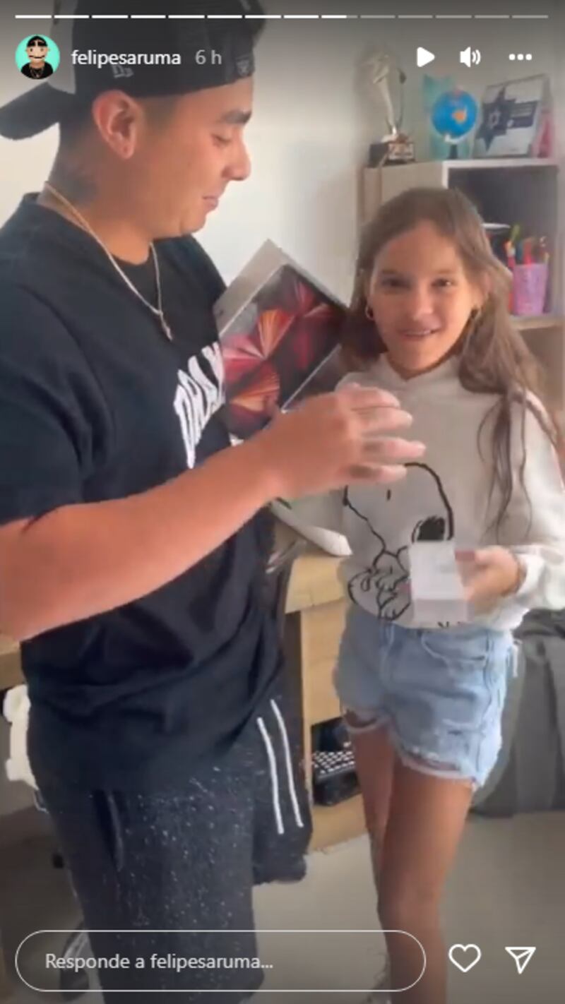 “Resulta que la semana pasada Isa ganó el año, lo pasó, y le fue bien, bastante bien”, comentó Felipe Saruma en sus historias de Instagram. “Yo le había dicho a Isa que si pasaba bien el año le daba algo que ella quería desde hace rato. A ella le gusta mucho dibujar y desde hace rato quería un iPad para hacer sus ilustraciones”.