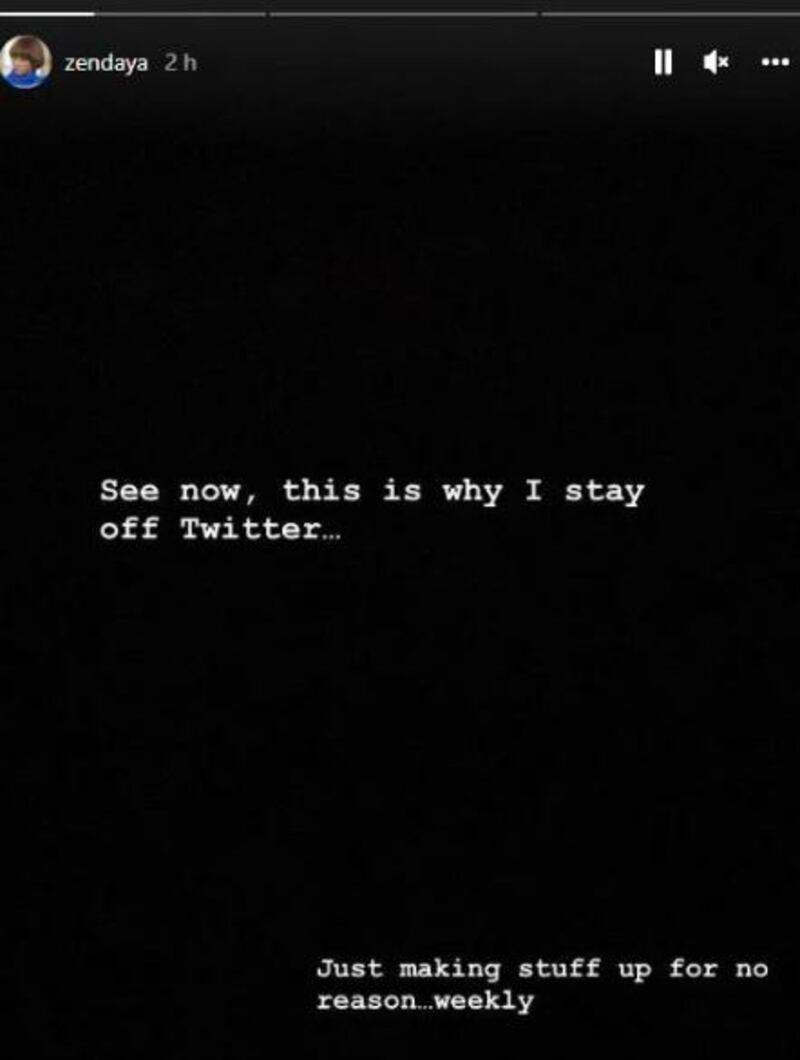 Para Zendaya este fue un mal chiste y, por eso, recurrió a sus historias de Instagram, donde envió un mensaje que daba a entender su molestia por la falsa información.
