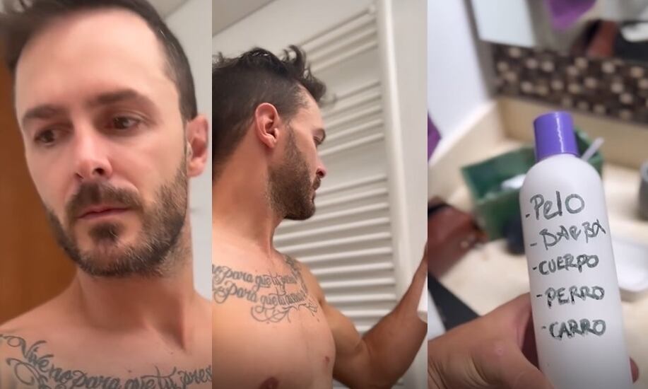En ese preciso momento la estrella de ‘Master Chef Celebrity Colombia’ queda mucho más que consternado y deja ver en su mano el champú, solo que para unos usos un tanto particulares pues dice “Pelo, cuerpo, barba, perro, carro”.