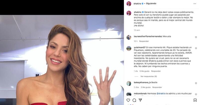 Otro de los mensajes que tienen en duda a sus seguidores es en la que Shakira resaltó el orgullo que sentía por Piqué como el mejor central del mundo en el ámbito del balompié, pero él la ignoró nuevamente.