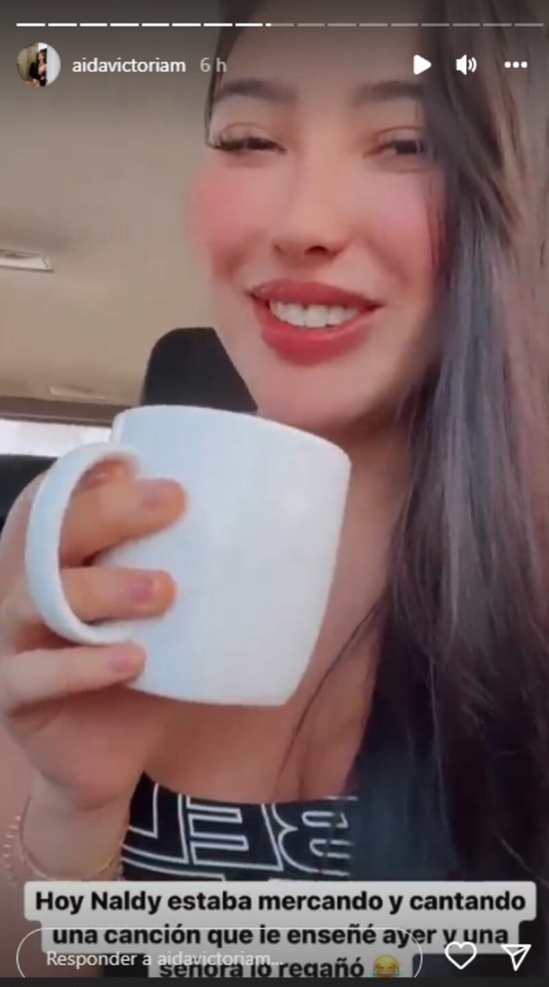 “Una señora me dijo que tenía la boca sucia por estar cantando esa canción”, dijo Naldy en una de las historias de Aída Victoria Merlano mientras ella se reía por lo sucedido. En el clip, la influencer también dio un poco de contexto por lo expresado por su novio: “Hoy Naldy estaba mercando y cantando una canción que le enseñé ayer y una señora lo regañó”.