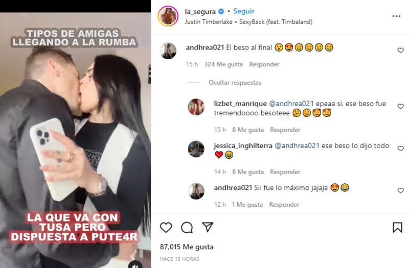 Desde hace varias semanas han circulado muchos rumores que vinculan románticamente a La Segura con Ignacio Baladán, un joven pastelero con el que ha compartido los últimos días en Perú. Y si bien la influencer no ha confirmado la relación, tal parece que tampoco trata de mantenerla en bajo perfil ya que subió un video en el que se besa de manera apasionada con su pretendiente.