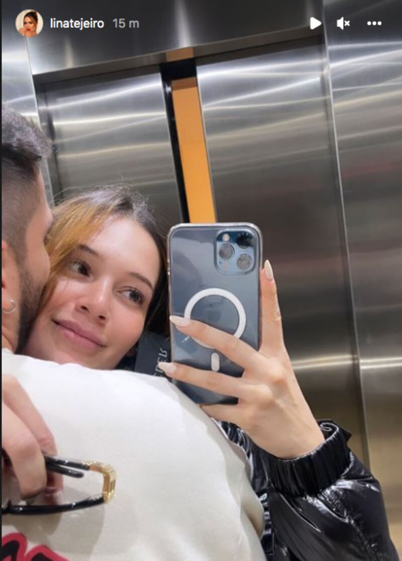 Los dos aparecen bastante acaramelados abrazándose en un ascensor. Al parecer se disponían a salir porque Lina lleva gafas de sol. Varios afirman que si Lina se atrevió a publicarlo y hacer su romance mediático, es porque las cosas van muy en serio. Además, la sonrisa de ella podría confirmar la felicidad que tienen al estar juntos.