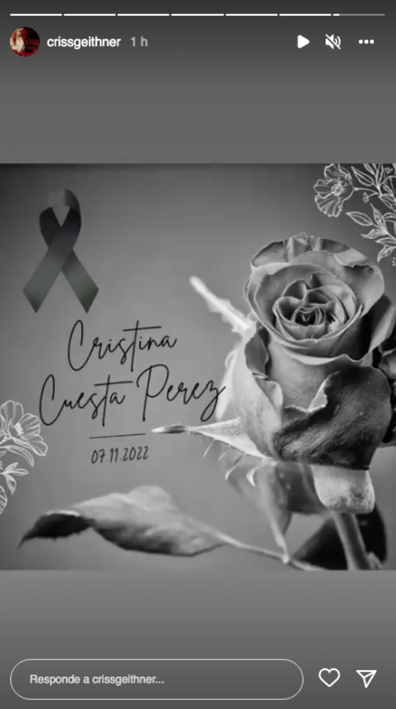 “Con sumo pesar, extendemos nuestras máximas condolencias tras la partida de la señora Cristina Cuesta Pérez, madre del señor Harry. Rogamos que su alma descanse en paz. Enviamos nuestro acompañamiento, cariño y solidaridad a toda la familia Geithner y Cuesta”.