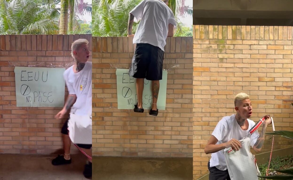 Luego reflejó a los que no tienen visa, y es por ello que recreó que salta el muro que divide la frontera de México con los Estados Unidos de América la cual musicalizó con el sentido tema ‘La Frontera’ del grupo Los Parras. En esa parte se le vio junto a un bolso lleno de pertenencias y de repente el sonido de sirena de una patulla fronteriza.