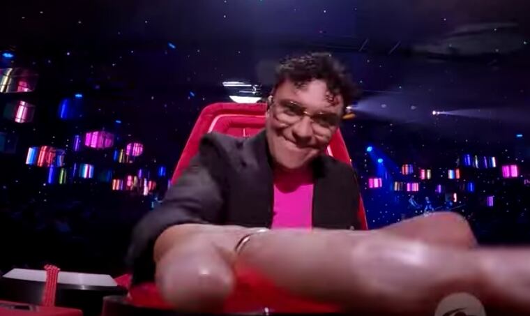 En el capítulo de este viernes de La Voz Kids, el entrenador Andrés Cepeda volvió a ser bloqueado en la primera presentación por su compañero nacho y como fue el último de los entrenadores en intentarse voltear, cuando quiso no pudo.