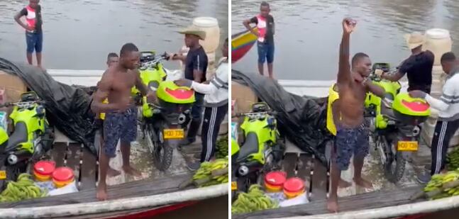 Lo sorprendente es la forma como este hombre tiene la suficiente fuerza para cargar la moto y pasar de la barca a tierra firme. El video publicado ha generado múltiples reacciones y los usuarios de internet no se han aguantado las ganas de comentar.
