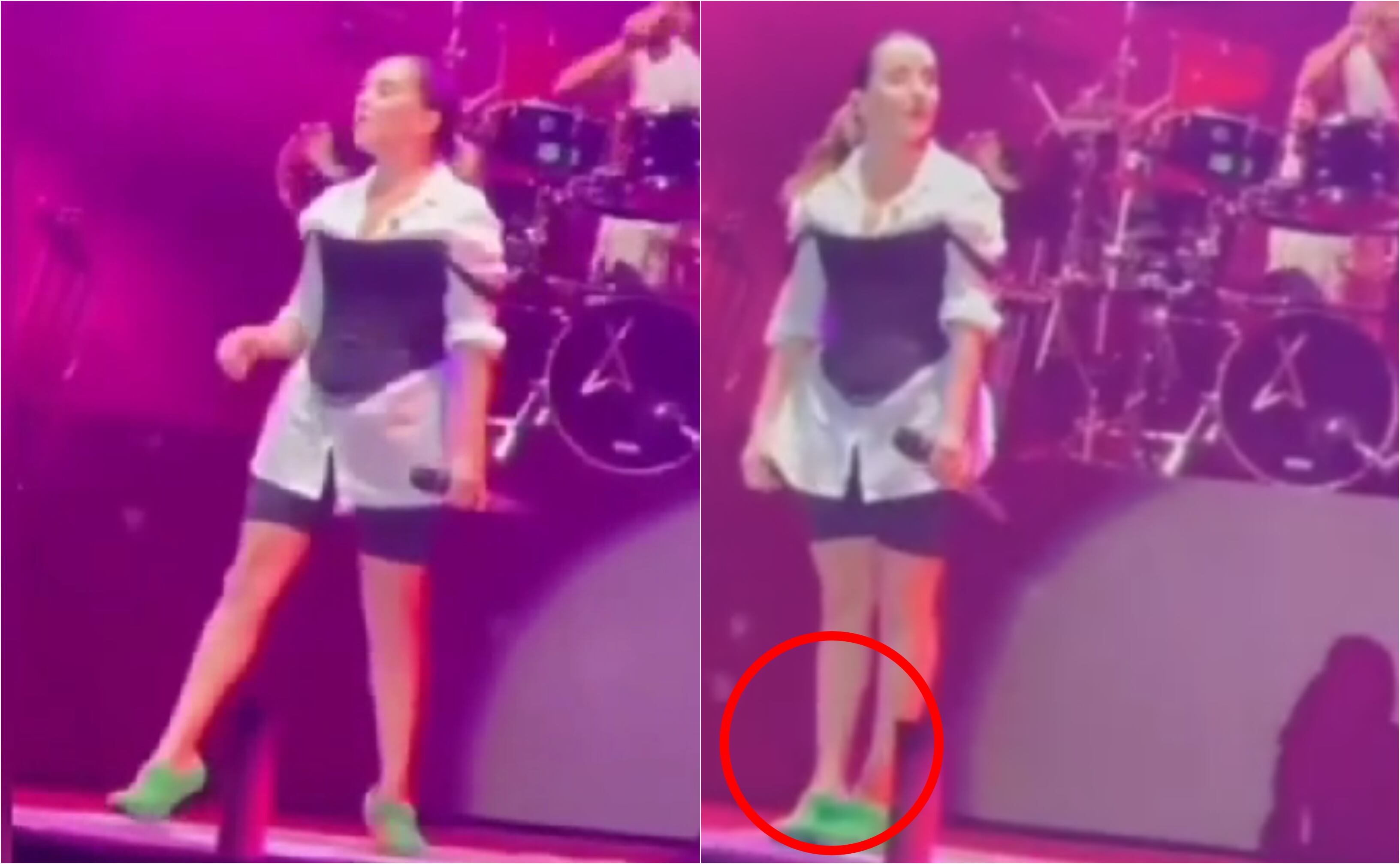 La cantante apareció con lo que parecía ser una lacra negra, una camisa blanca y un chaleco negro encima, además de unas Crocs verdes con tacón, pero no cualquiera, pues son de la marca Balenciaga que en pesos colombianos, podrían llegar a costar más de dos millones de pesos. Evidentemente, dichos zapatos llamaron la atención de todos, pues no son muy comunes que digamos.
