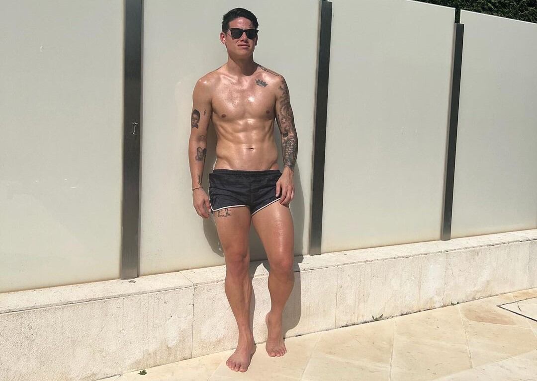 Días atrás el futbolista colombiano James Rodríguez hizo su hasta ahora última publicación en la que sale a un costado de la piscina posando bajo el Sol en una short negro y gafas oscuras.