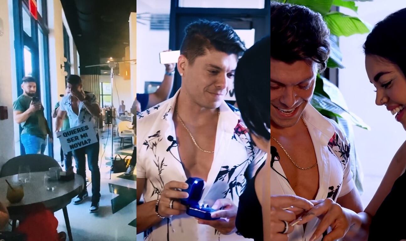 Ambos muy conmovidos se acercaron para darse un beso, pero llegó otra sorpresa más y es que Ignacio Baladan sacó de su bolsillo dos hermosos anillos. “Para sellar esto que estamos pasando y nada, te quiero dar también un detalle para que cuando no estemos cerca, por lo menos pueda verlo y sentirme más cerca”, dijo.