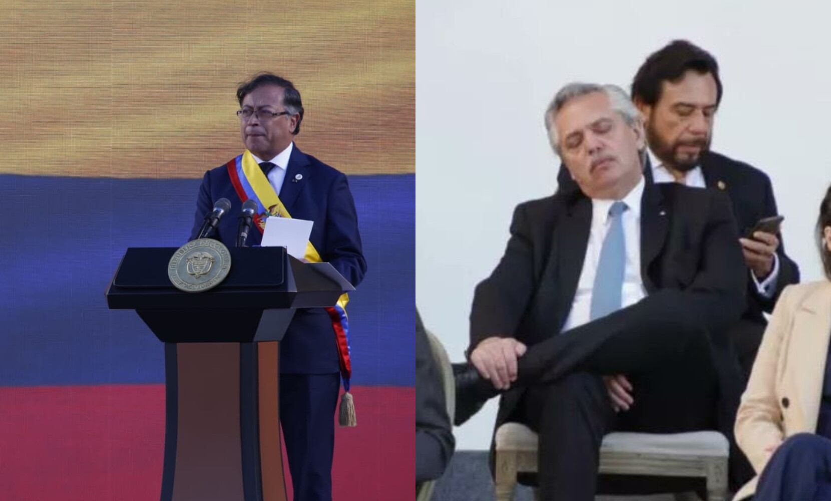 Estas son algunas de las reacciones que ha dejado la foto del presidente de Argentina durmiendo en la posesión de Petro: