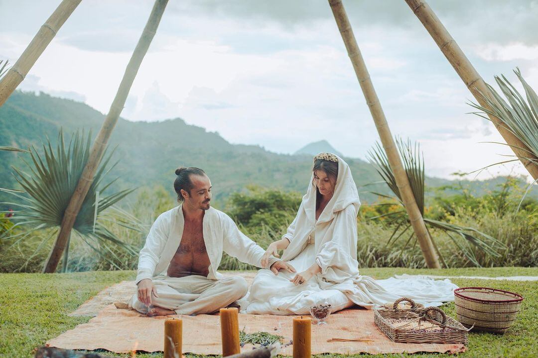 Y es que, en medio de la naturaleza propia de la sierra colombiana, sobre el extenso pasto y sentados sobre él cubiertos únicamente de paraguas la pareja reiteró su amor y compromiso de vida ante sus familiares y amigos más cercanos.