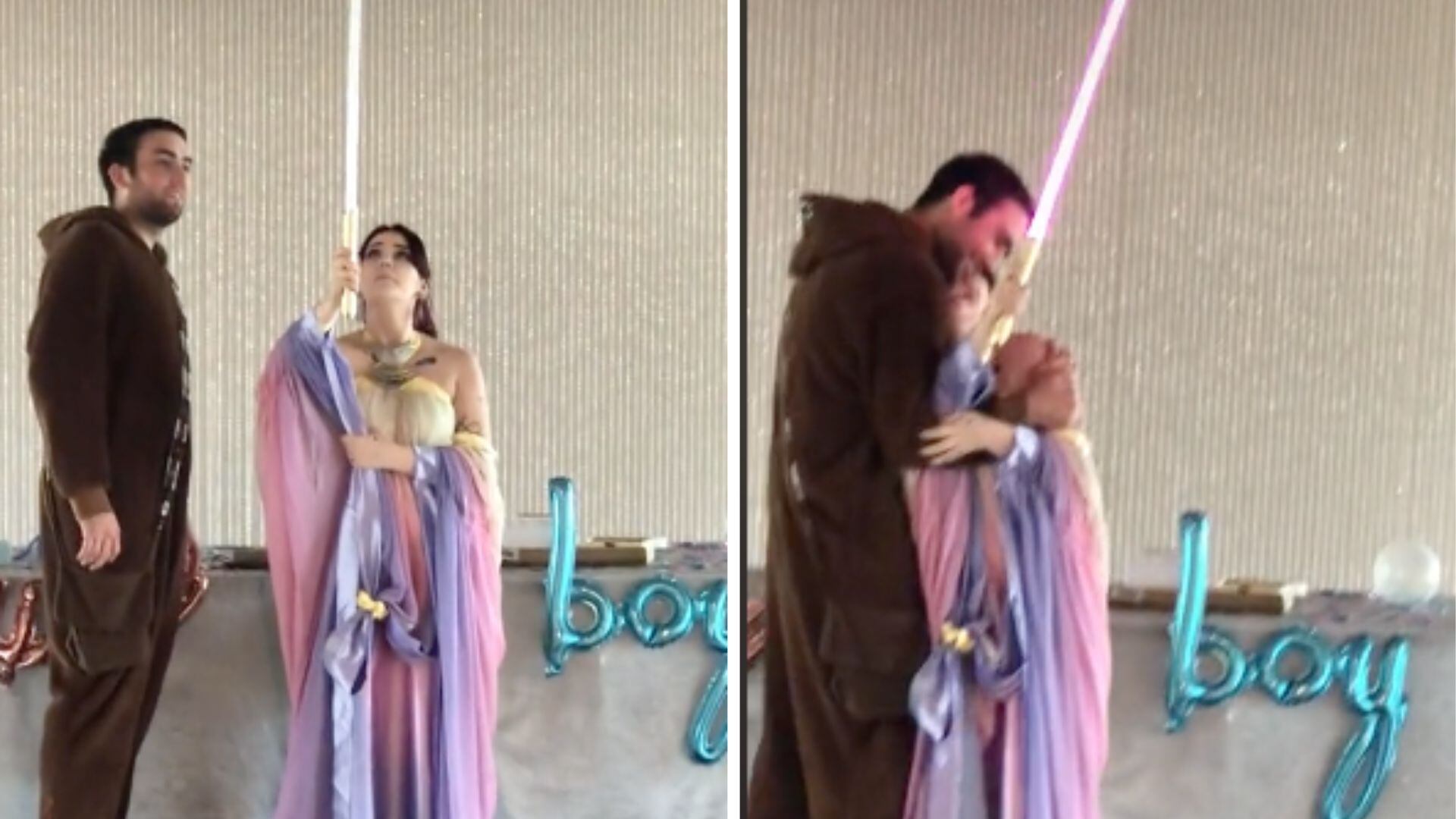 Una pareja reveló el sexo de su bebé con sables de luz.