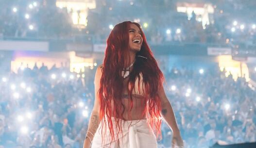 Carolina Giraldo, como es su nombre de pila, se paró por primera vez en un escenario luciendo su cabello rojo y cantando su tema ‘Provenza’. Esto ocurrió durante el show del rapero Eladio Carrión que realizó en Puerto Rico el pasado sábado 20 de agosto.