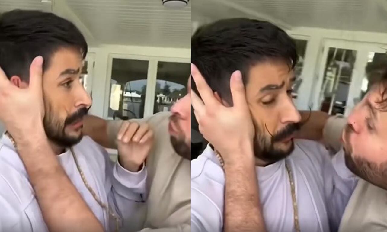 Un hombre que le acompañaba en el lugar ha decidido brincarle encima y tomarlo con presión de la barbilla para besarlo a la fuerza. A lo que el cantante buscó separarse como pudo.