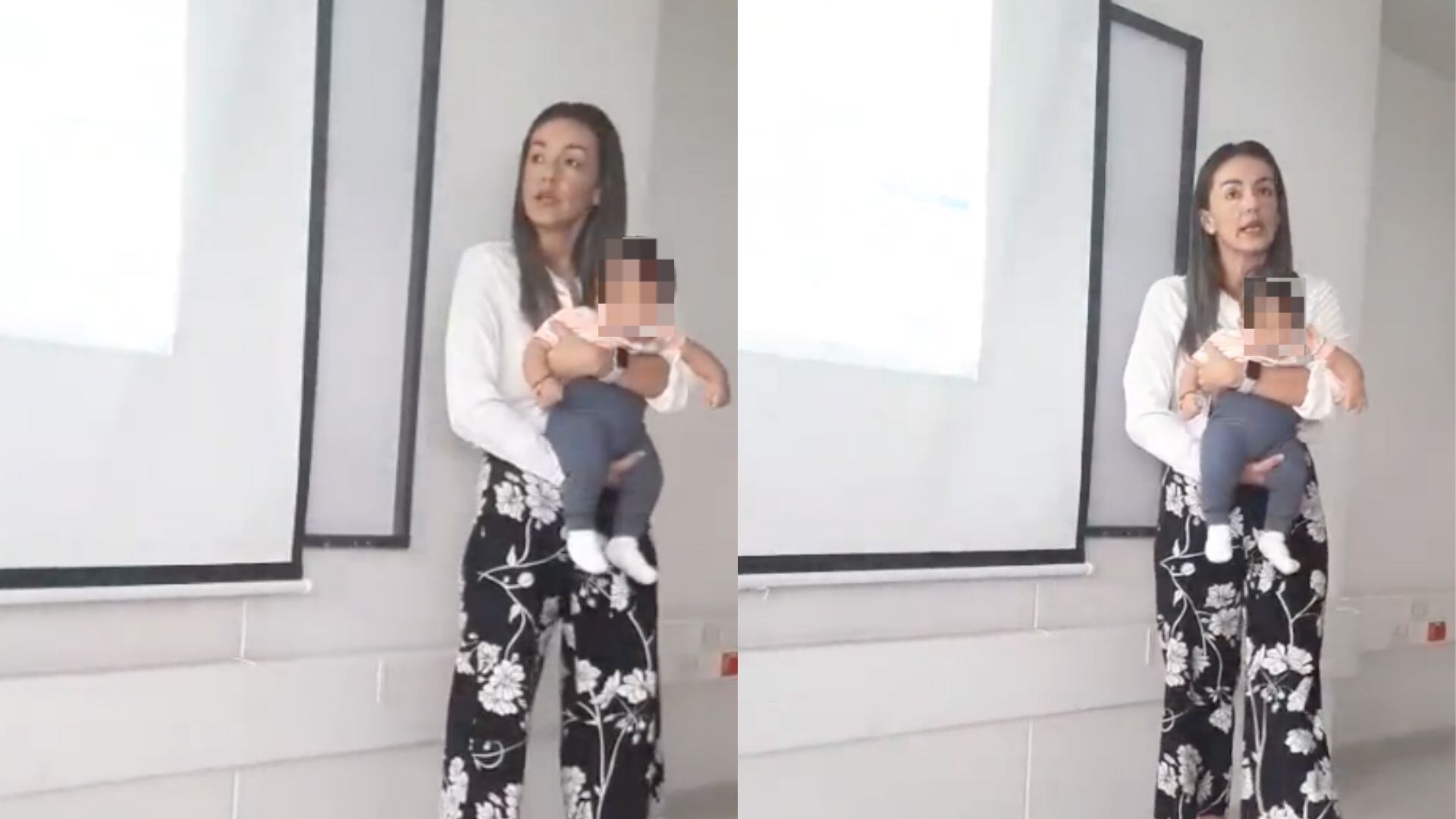 En Twitter un video se volvió viral luego de que una joven publicara en su cuenta, el momento en que una docente sostiene a un bebé mientras explica uno de los temas durante su clase.