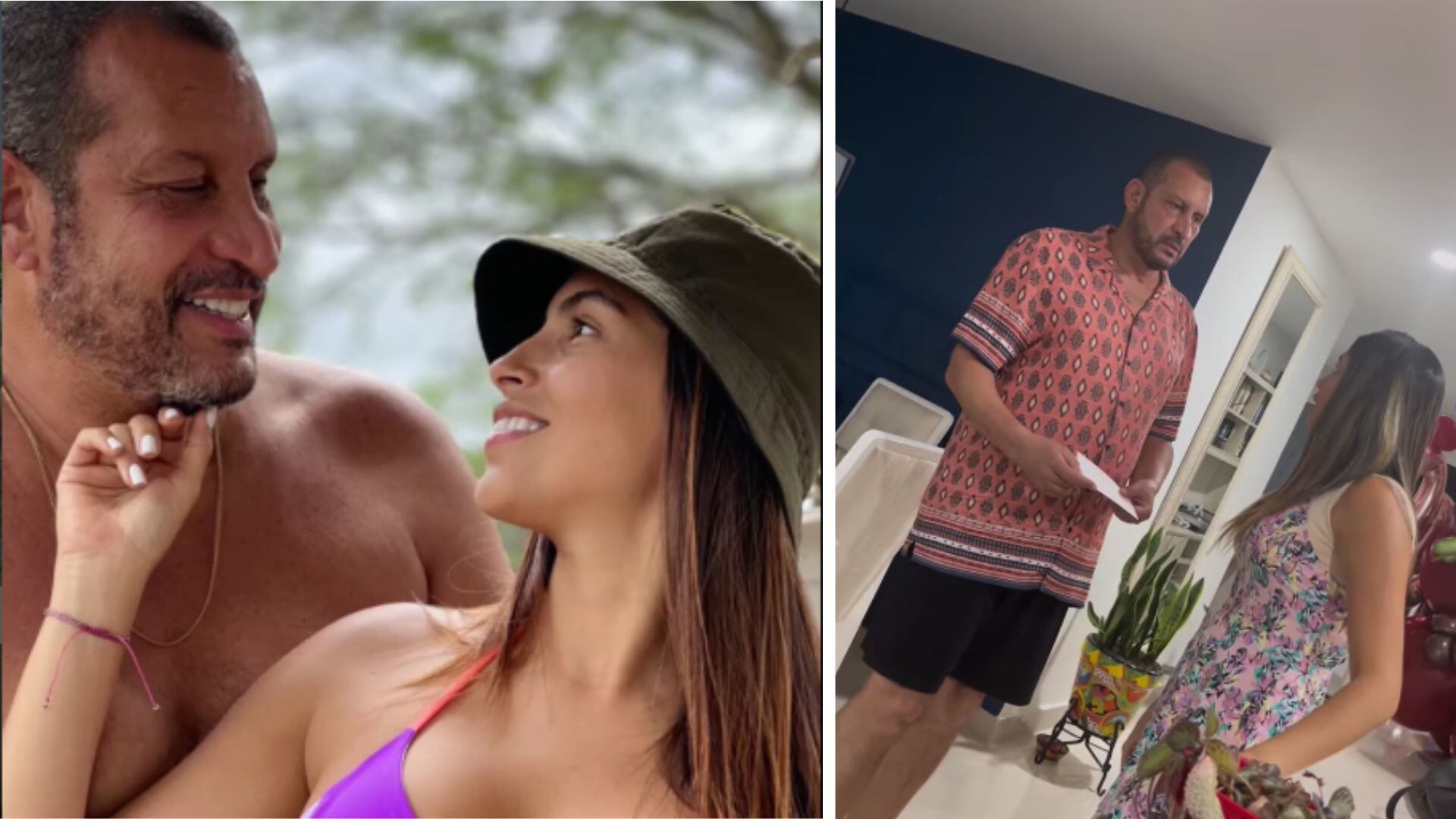 A continuación, Lorena le hace saber que viene de parte de un enamorado y él reacciona de manera muy enojado lanzando frases como “Aquí vamos a tener un problema”. Finalmente, ante la molestia de su esposo, la actriz finalmente decide confesarle que se trata de una broma.