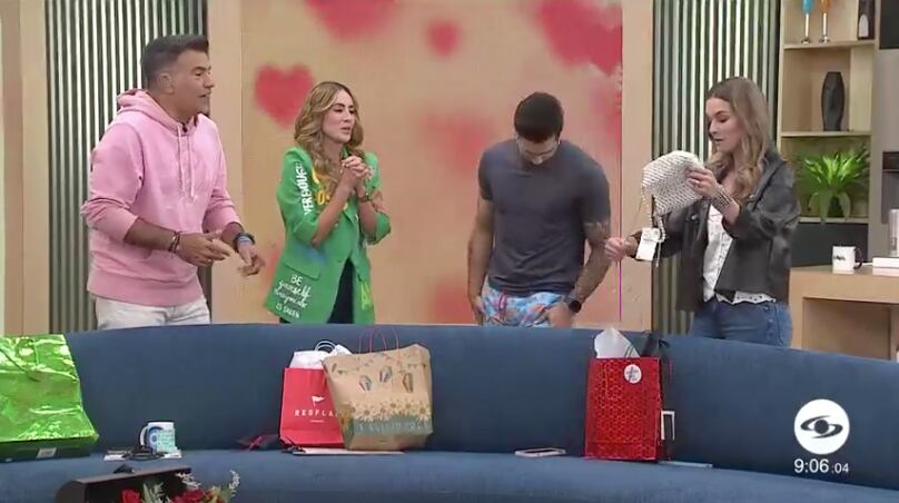 Solo quedaba el turno de Juan para abrir su regalo, y a falta de Carolina Cruz en el set no podía venir de otra persona que no fuera Catalina. El chef procedió a abrir su regalo y en la bolsa encontró una pantaloneta, que terminó poniéndose encima del pantalón que tenía para mostrar como le quedaba.