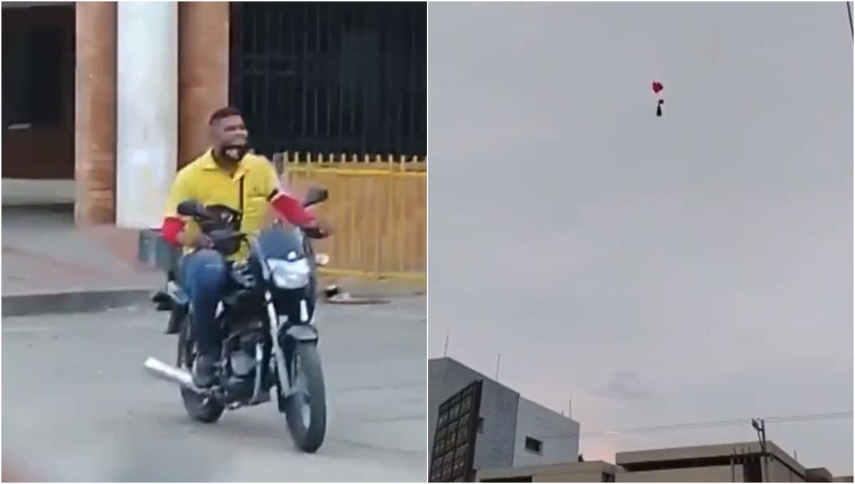 El regalo de amor y amistad salió a volar de las manos de un domiciliario