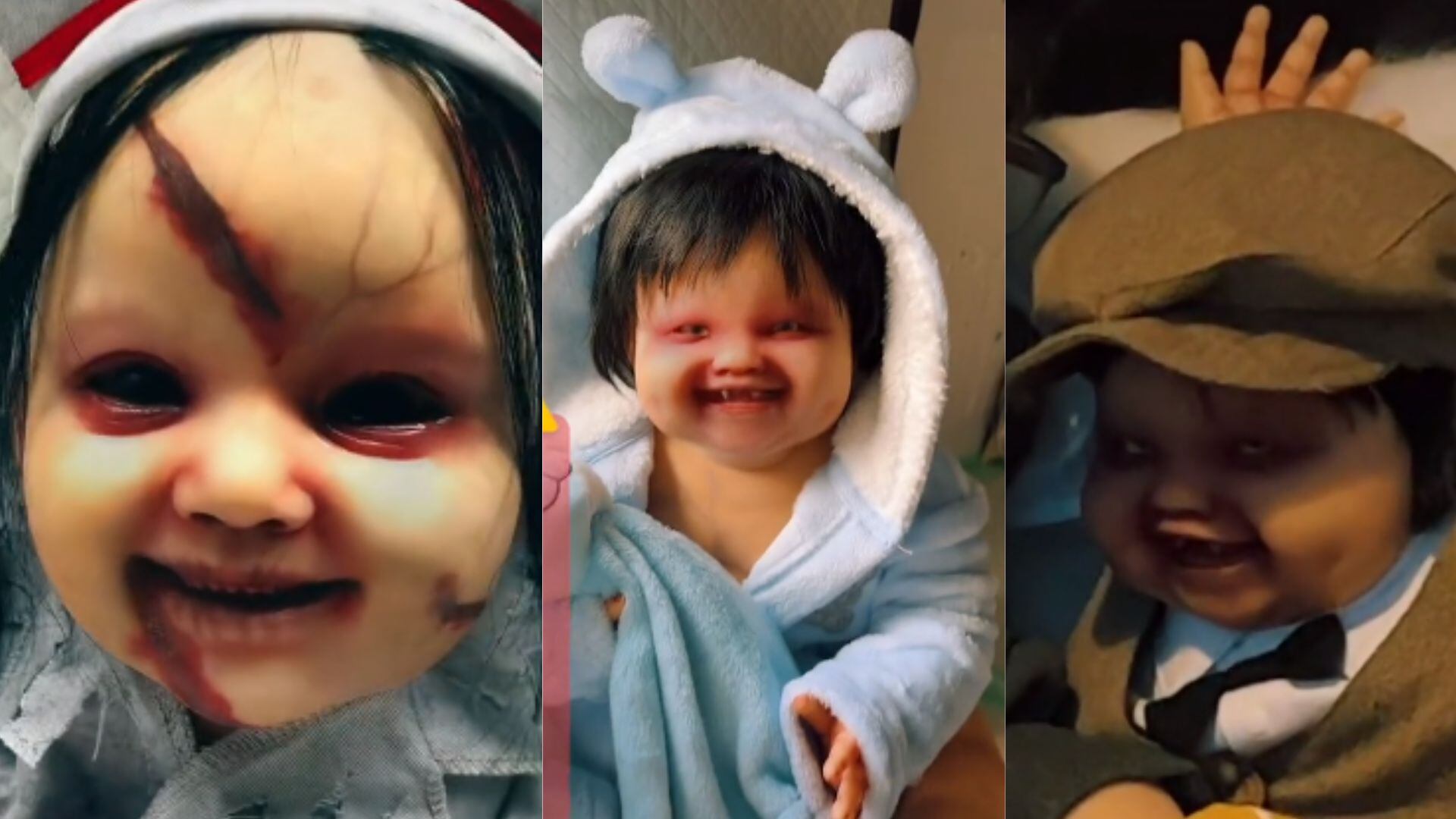 Se trata de unos bebés terroríficos hechos en silicona. Tan reales que llega a causar miedo al saber que en todo momento te están observando. Unos están vestidos como el payaso ‘IT’, como la niña de la película de terror, ‘El Aro’, con cicatrices como ‘Chucky’ y con colmillos como vampiros.