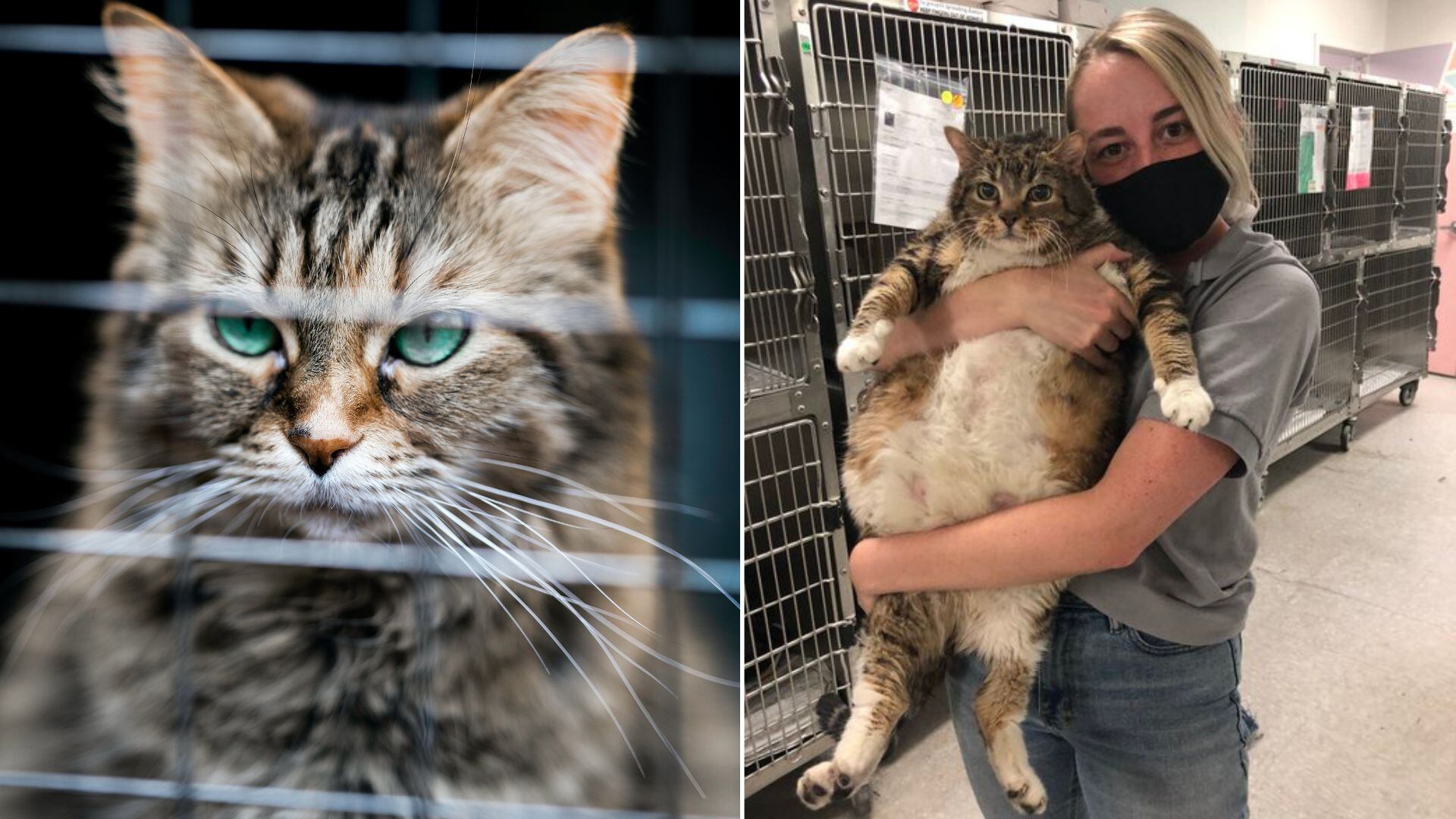 Para su fortuna las personas encargadas del lugar la acogieron y empezaron a hacer una campaña en redes sociales en la que le buscaban un nuevo hogar. Allí informaban que Lasaña había sido abandonada por sus humanos porque tiene cerca de 14 kilos de peso. En la foto se puede ver como la gatica es alzada en brazos por una de las cuidadoras.