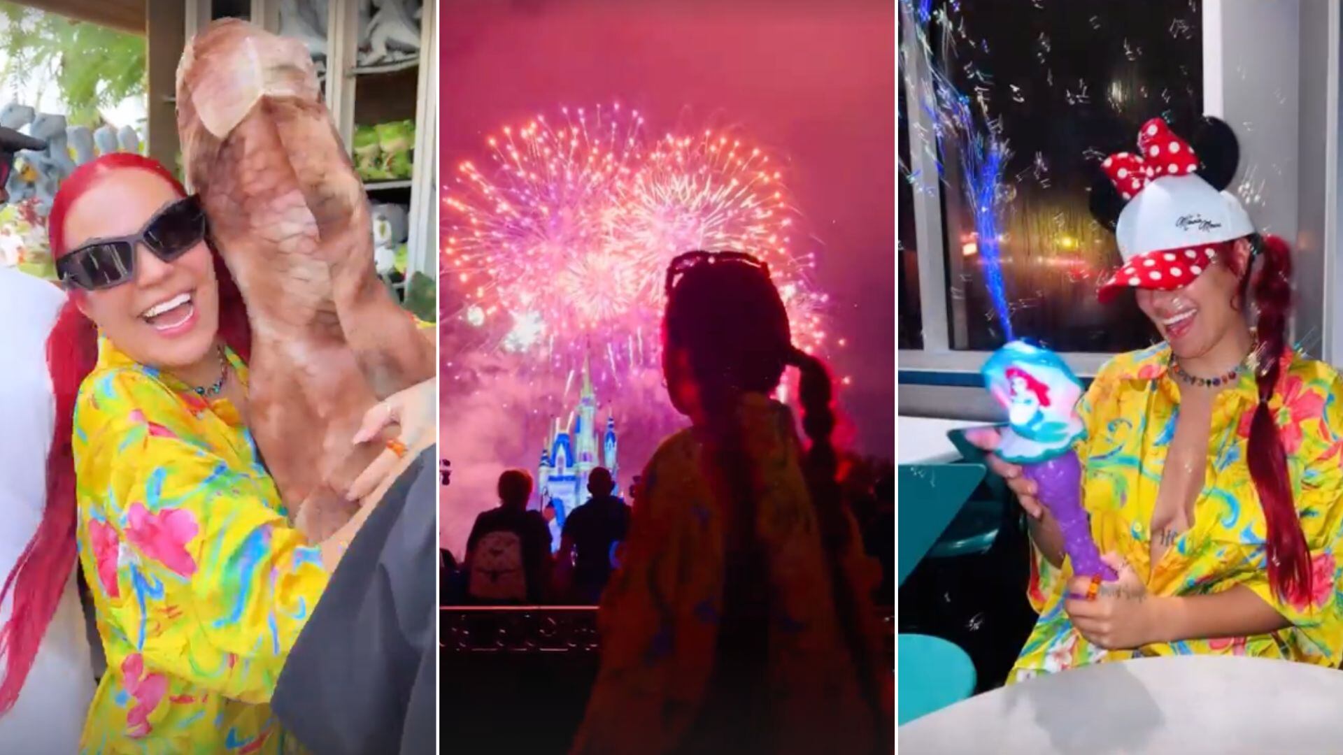 En las imágenes se le ve jugando al tiro al blanco, en donde se ganó un dinosaurio al que bautizó ‘Peluchiraptor’, en montañas rusas, en un centro interactivo de Star Wars, comiendo helado, perros calientes y lo que no podía faltar en una visita a Disney, el momento mágico de los fuegos artificiales sobre el castillo tradicional de la emblemática marca del ratón.