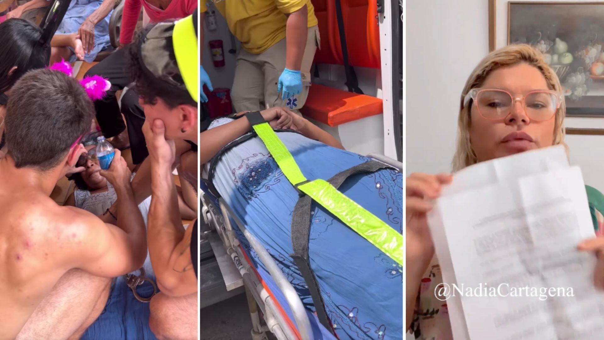 Aunque de por sí el tema ya resultaba bastante extraño por el contexto, las cosas se ponen aún más complejas cuando una se ve a una mujer tirada en el piso, sufriendo un problema de salud, luego se ve como llegan unos presuntos paramédicos a auxiliarla y terminan por sacarla en una camilla a una ambulancia. Junto al video publicado por la generadora de contenidos Nadia Cartagena, se puede leer textualmente “Anciana sufre INFARTOOOO por fiesta sorpresa en Cartagena”.