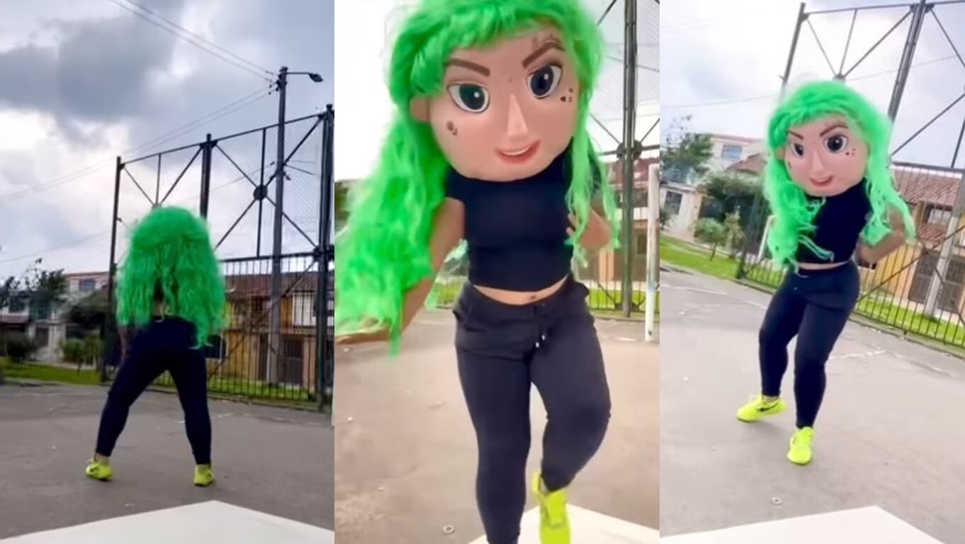 La publicación es un video dentro de una cancha deportiva y sobre un cuadrado blanco que sirve de pista para quien luce la enorme cabeza pueda hacer los pasos de una de las guarachas de la DJ.
