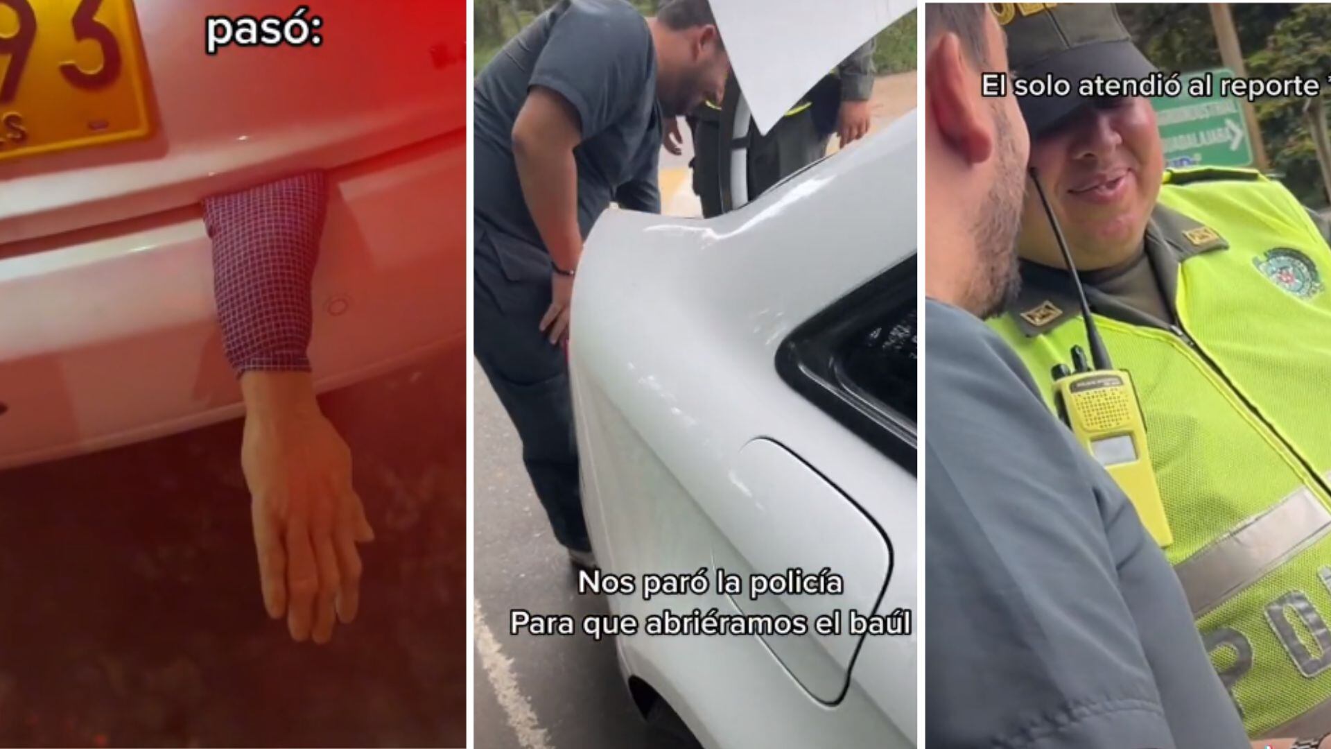 Haciendo muy bien su labor las autoridades llegaron al lugar de los hechos y detuvieron el carro, el conductor del vehículo que se puede ver risueño y gozándose el momento abrió el baúl de su carro y le pasó el brazo de mentiras al policía, incluso grabó al hombre que hizo la denuncia y lo acompañó con el texto “el señor dijo que teníamos un muerto”.