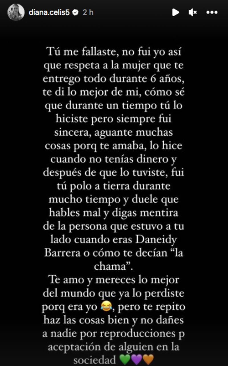 Sin embargo, Diana no se quedó callada ante la injusticia que ella sentía que se estaba cometiendo, así que compartió un video en donde hablaba de su relación con ‘Epa’ y en lo que se había convertido:
