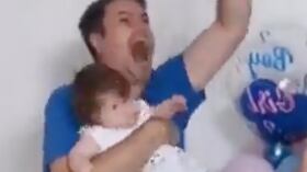 Sin embargo, poco se ve que el mismo papá se olvide que tiene a su hija pequeña en brazos y celebre de una manera demasiado efusiva, tanto, que incluso la niña pudo haberme vomitado luego del momento del video.