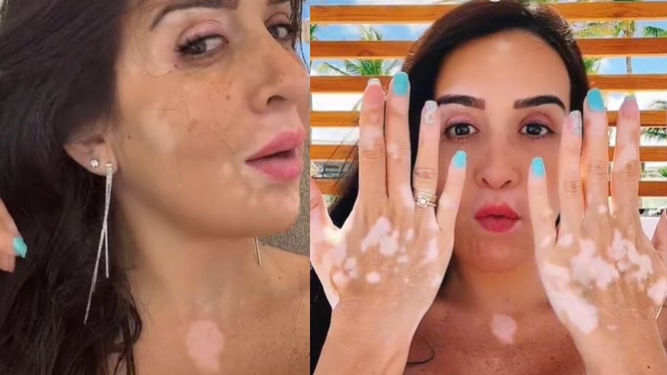 “Ahí se me notan más porque estos días he estado muy expuesta al Sol y me he bronceado, pero las manchitas blancas no se broncean, pero cuando llegue de nuevo a mi casita, y pasen los días y me blanquee otra vez mi piel normal, pues no se me van a notar tanto las manchas, ¿Sí me entienden? Pero realmente yo nunca me las maquillo, me las dejo así”, confesó AdriLatina.