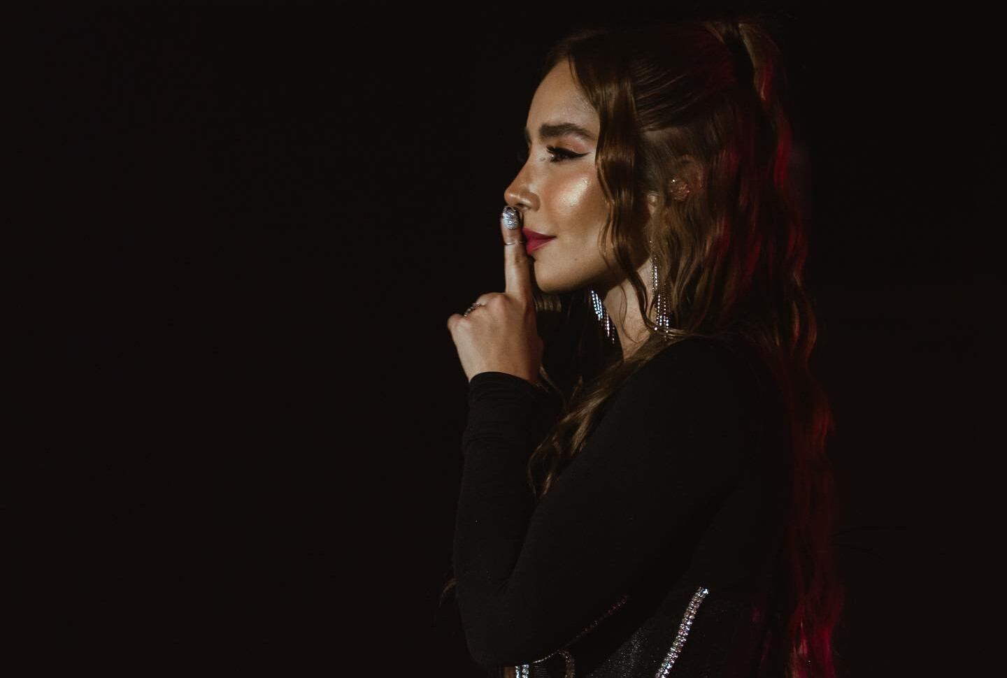 Con una primera fotografía haciendo una señal de silencio, con su dedo sobre sus labios, que aparentemente le pide al publico presente en el show, la cantante y también esposa de Jessi Uribe escribió “Nadie sabe el dolor que esconde una sonrisa 🙏 🙌🏻 ❤️”.