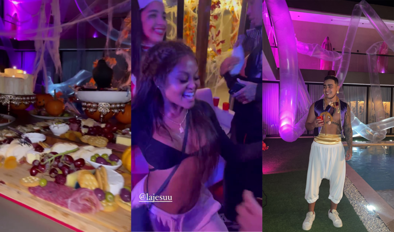 El evento, que se extendió durante toda la noche del domingo hasta la mañana del lunes, contó con la intervención de un duo musical, todo tipo de bebidas y cocteles, comida con temática de Halloween y fuegos artificiales, dejando ver que la pareja no escatimó en gastos para llevar a cabo una de las celebraciones más elaboradas que han hecho hasta el momento.