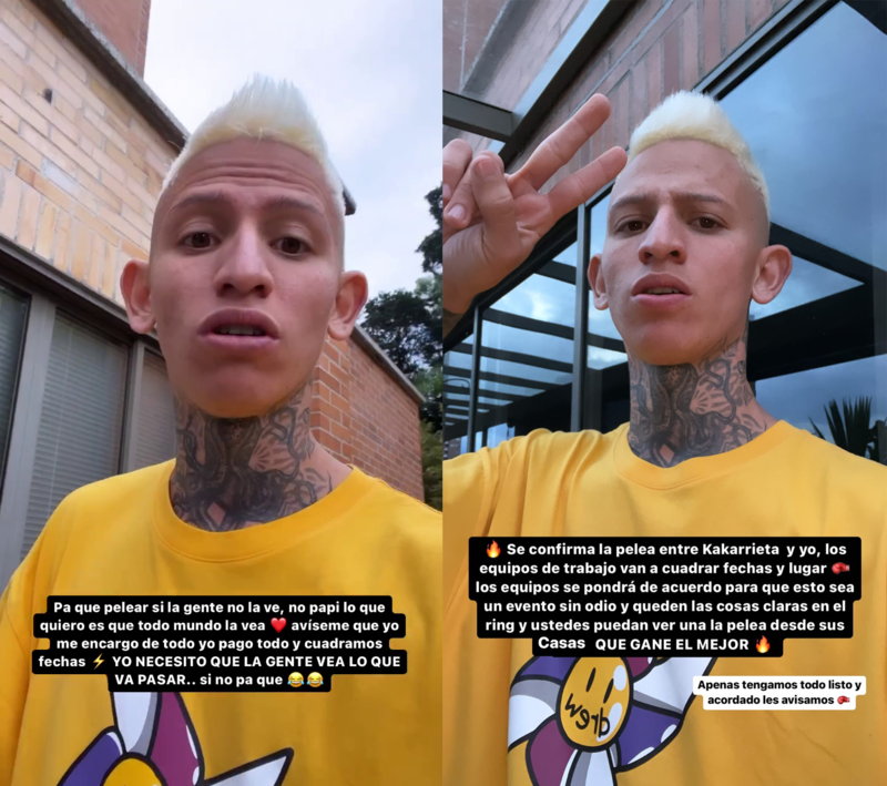 “Se confirma la pelea entre Kakarrieta y yo, los equipos de trabajo van a cuadrar fechas y lugar”, escribió el creador de contenido refiriéndose a Nicolás Arrieta. “Los equipos se pondrán de acuerdo para que esto sea un evento sin odio y queden las cosas claras en el ring”.