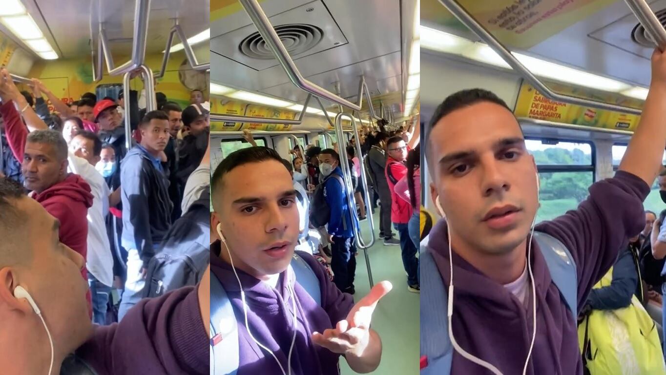 No obstante, se acerca a otro de los pasajeros y le pide que lo ayude “Señor por favor le puede decir a mi novia que de verdad estoy en el metro. ¿Alguien le puede decir a mi novia que estoy en el metro?”. Y desde el fondo se escucha a muchos decir que está en el lugar y una mujer que le agrega “Deje a esa novia”.