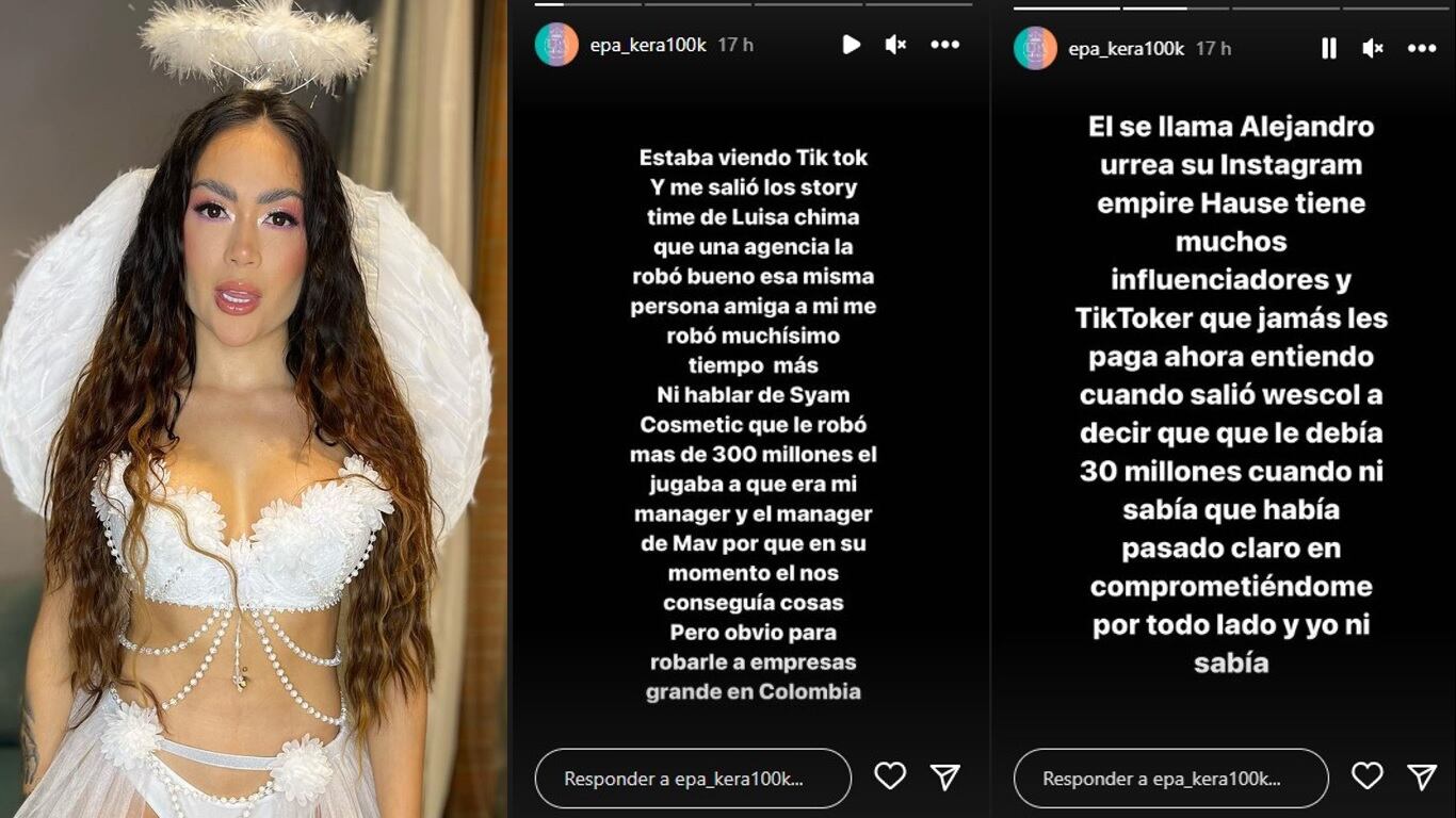 “Él se llama Alejandro Urrea, su Instagram Empire House tiene muchos influenciadores y tiktokers que jamás les pagó. Ahora entiendo cuando salió WestCOL a decir que le debía 30 millones cuando ni sabía que había pasado, claro, en comprometiéndome por otro lado y yo ni sabía. Estoy tratando de salir de todas las personas que les robó plata y en su cuenta y yo sacando plata de mi empresa para pagarles a esas personas, hablo de mucho dinero”, agregó la empresaria ‘Epa Colombia’.