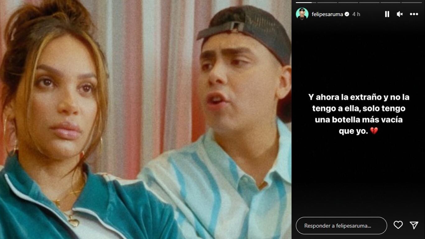 El texto se desplegó sobre una pantalla negra y con una frase corta que estuvo acompañada por el emoji de un corazón roto, destilando una desilusión, duelo o separación. Además, que, en la frase, la cual ni siquiera estuvo marcada como una cita, se leía “Y ahora la extraño y no la tengo a ella, solo tengo una botella más vacía que yo. 💔”.