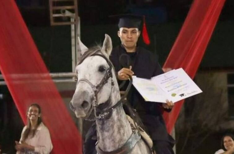 Imer Baldovino es un joven estudiante que se convirtió en viral durante los últimos días a través de las redes sociales luego que recibiera su diploma durante su ceremonia de graduación montado en su caballo, en un registro en video que llamó la atención de todos y que generó diversas reacciones.