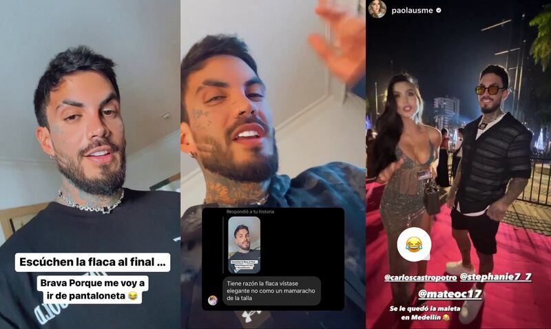 A propósito de esto, un usuario de Instagram se involucró en la pelea, escribiéndole por mensaje directo que ese atuendo no le quedaba bien: “Tiene razón ‘la flaca’, vístase elegante, no como un mamarracho de la talla”. Ante este comentario, Mateo Carvajal decidió responderle directamente, diciéndole que puede aguantar todo tipo de insultos excepto que se metan con su estilo.