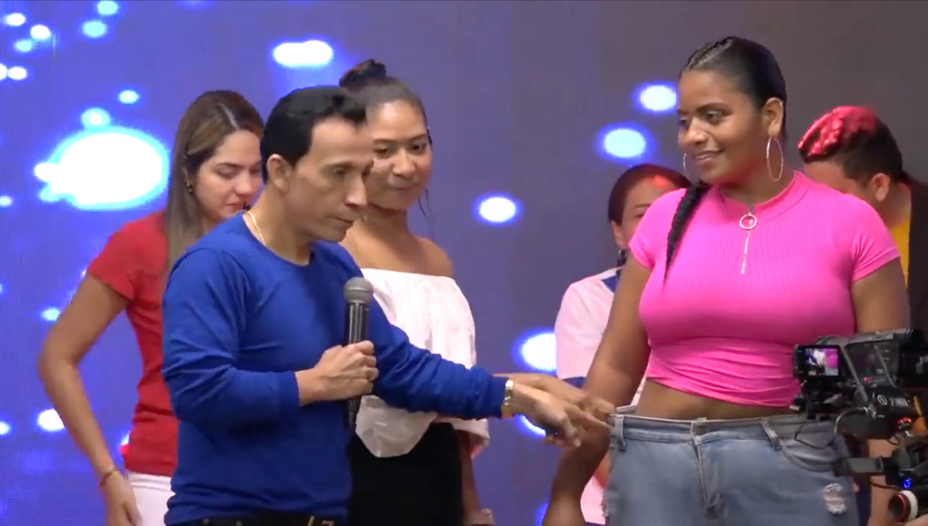 Una vez finalizada la oración, el pastor pide a otra mujer que le ayude a tirar del pantalón de la voluntaria para demostrar que ahora le queda holgado, algo que por supuesto corrobora ella cuando le pregunta si antes le quedaba así, y ella afirma que “le quedaba ajustado”.