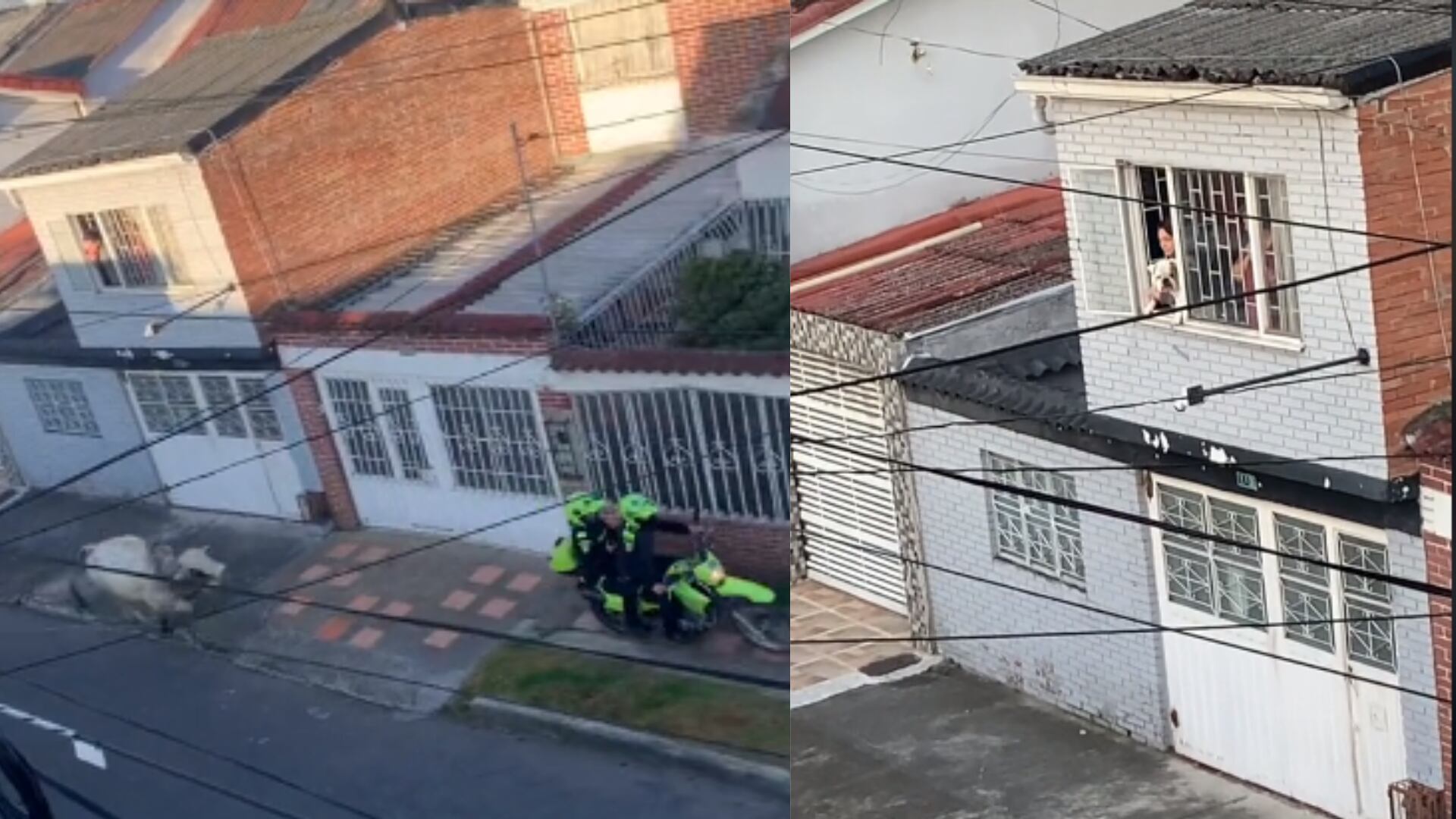 El insólito hecho, no solo despertó la curiosidad y risas de los vecinos, sino también hasta de un perro de raza Bulldog, que sacó su cabeza por la ventana de una de las viviendas para ‘chismosear’ lo que estaba pasando.
