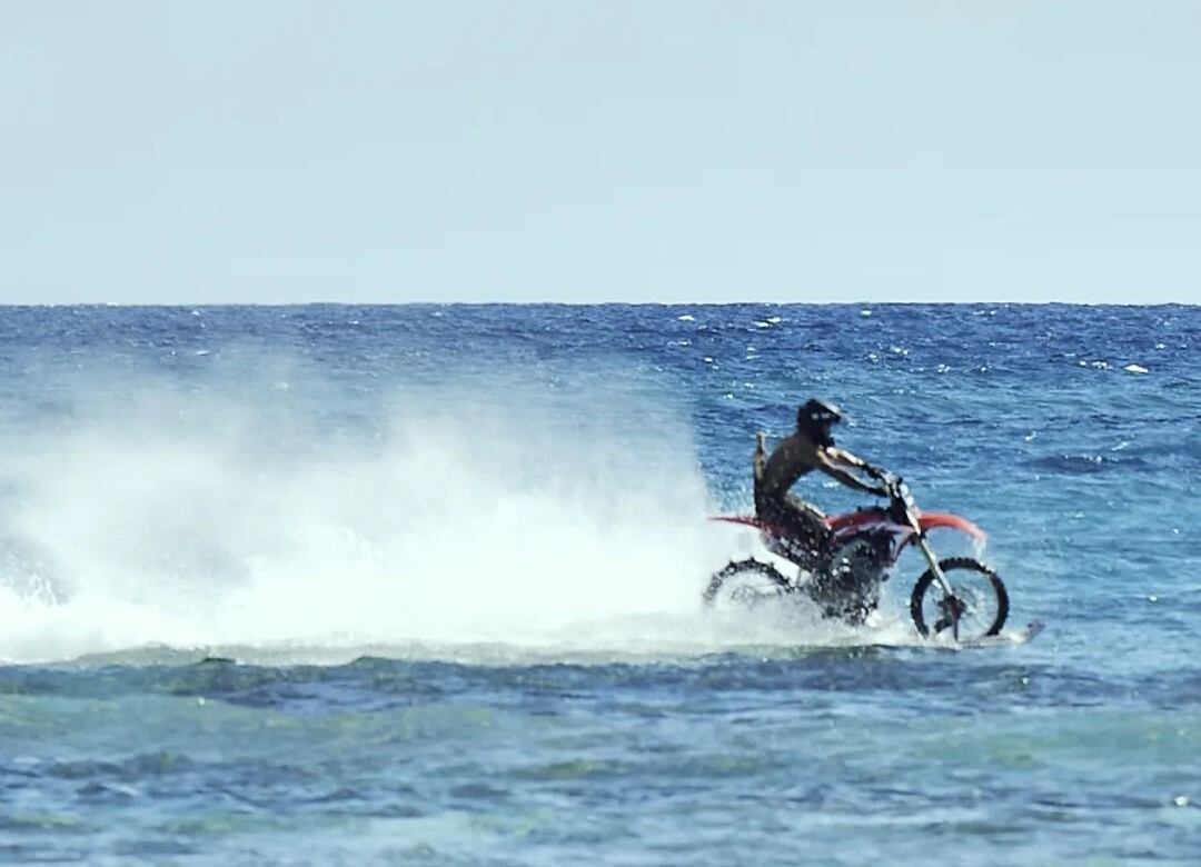 El clip de unos minutos muestra a Tatán Mejía recorriendo el pueblo en el que está el muelle desde donde hace sus respectivas acrobacias hasta llegar a un punto en el que hay una plataforma de hierro que se adhiere a la motocicleta y lo que vino después fue asombroso.