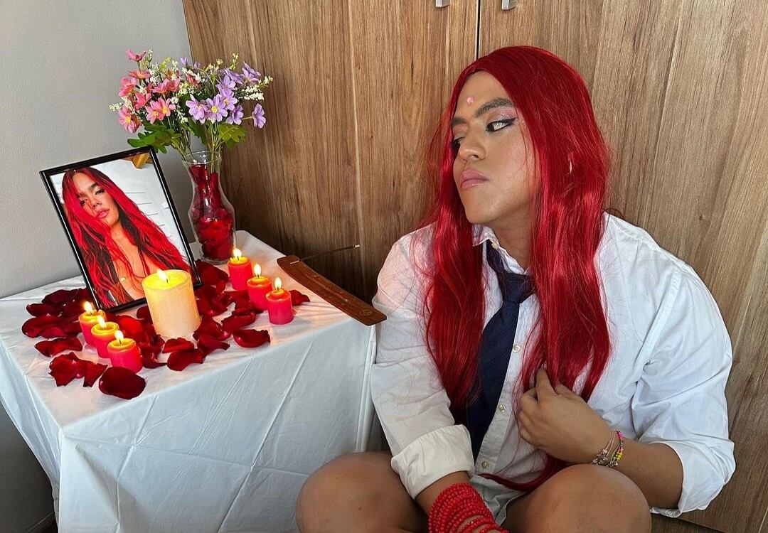 Y es que el creador de contenido armó un altar en su casa con varias velas las cuales lucen encendidas e iluminan una fotografía de Karol G, y en la parte superior se lograba leer el tuit que la cantante de ‘200 Copas’ hizo días atrás en el que etiquetó a la banda para que incluya a Colombia en su gira.