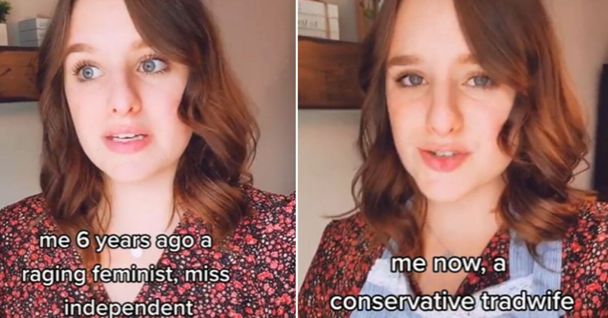 El video que ha ganado más de 34 mil likes, explica haber cambiado de opinión, dejando el feminismo de lado y abrazando un estilo de vida más tradicional: “Ahora soy una ama de casa conservadora”.