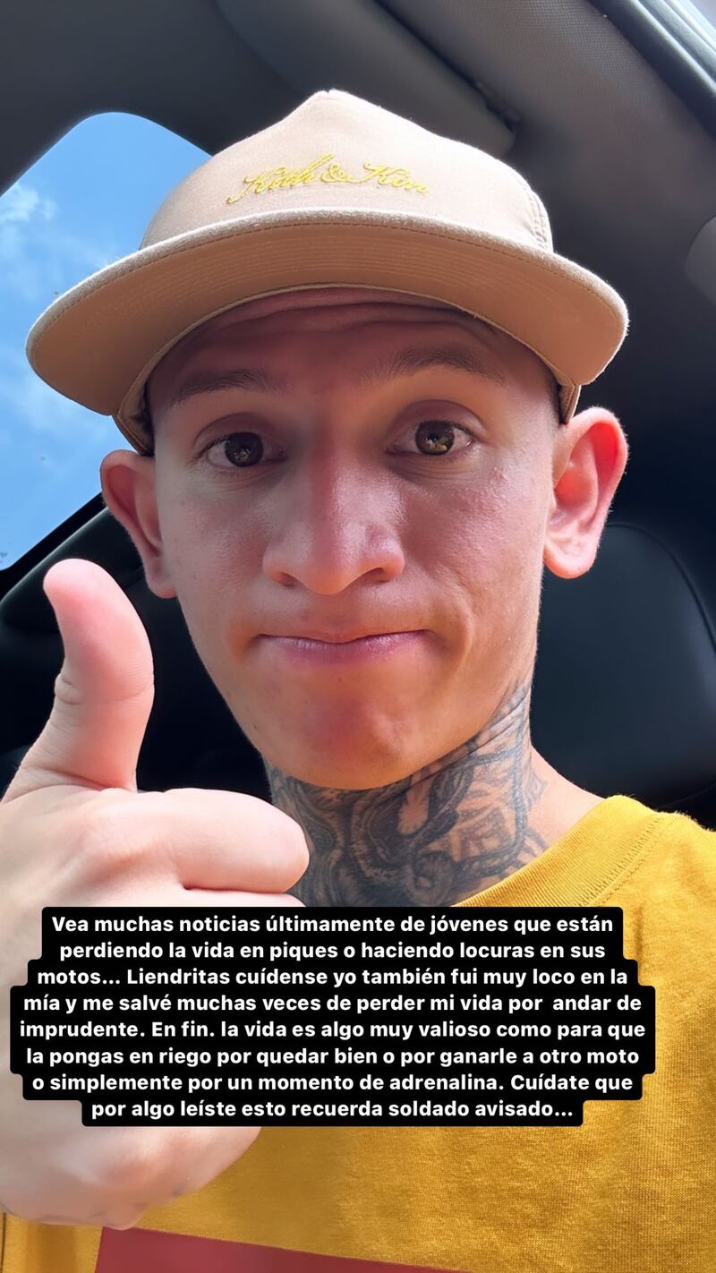 “Veo muchas noticias últimamente de jóvenes que están perdiendo la vida en piques o haciendo locuras en sus motos”, escribió el creador de contenido en una de sus historias.