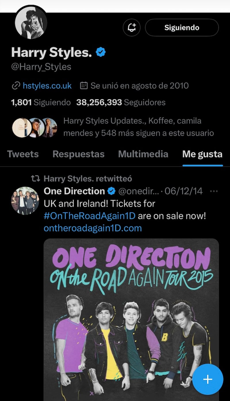 Solo tuvieron que pasar varias horas para que las directioners se dieran cuenta que Harry Styles le dio like o me gusta a un tweet de One Direction de 2014 donde se puede ver un póster del tour o gira On the Road Again donde aún se encontraban los cinco miembros de la agrupación británica.