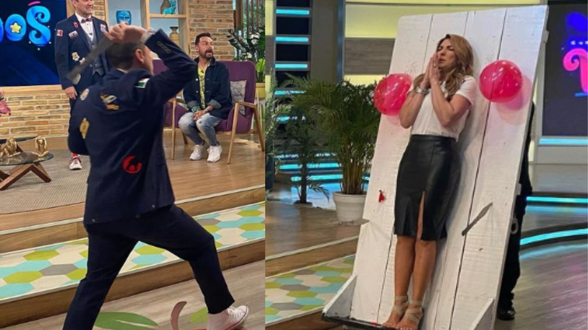 Aunque sabían del daño que podría provocar el roce o el impacto de los cuchillos en su cuerpo, los miembros del matutino dejaron atrás sus miedos, imploraron por ayuda divina y se quedaron estáticos en el paredón.